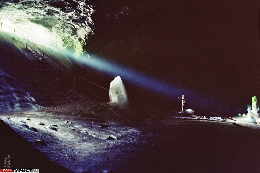 Крупнейшая полость Южного Урала мешкообразного типа с наибольшим по площади ледником и самыми значительными ледяными сталагмитами.
