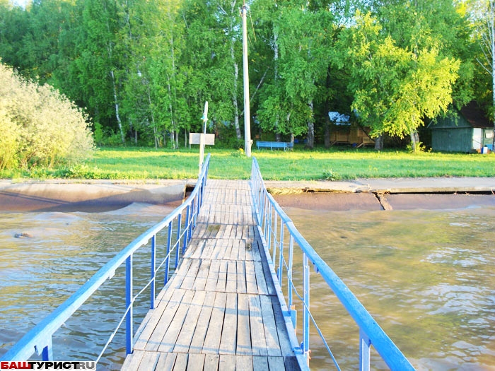Расположена на территории Национального парка "Башкирия" на берегу Нугушского водохранилища. Собственный песчано-галечный пляж (заход в воду с пирса).
