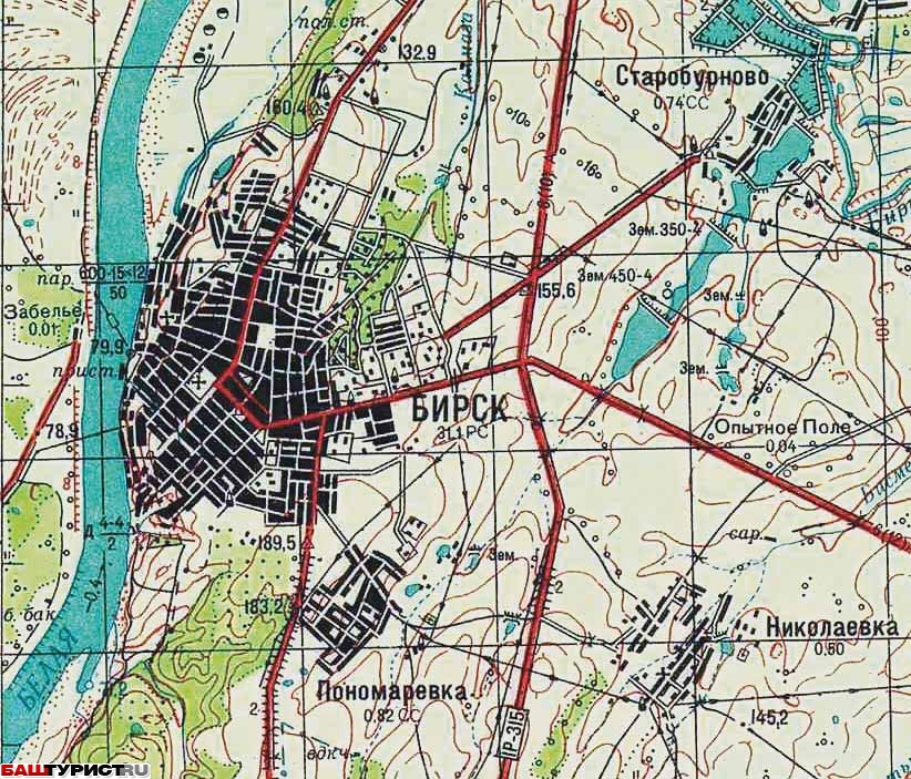 Город Бирск на карте