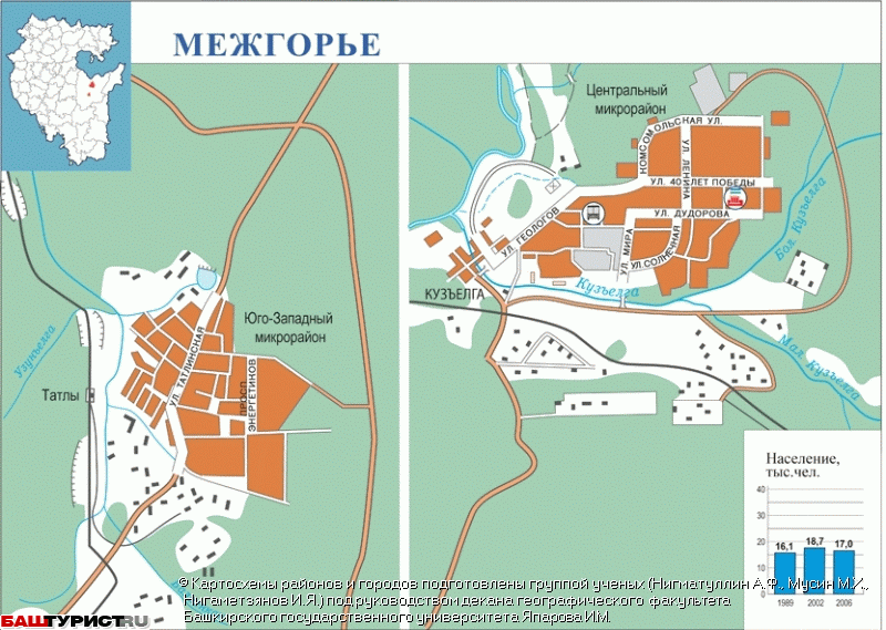Карта Межгорье (Кузъелга, Уфа-105, Солнечный, Белорецк-16)