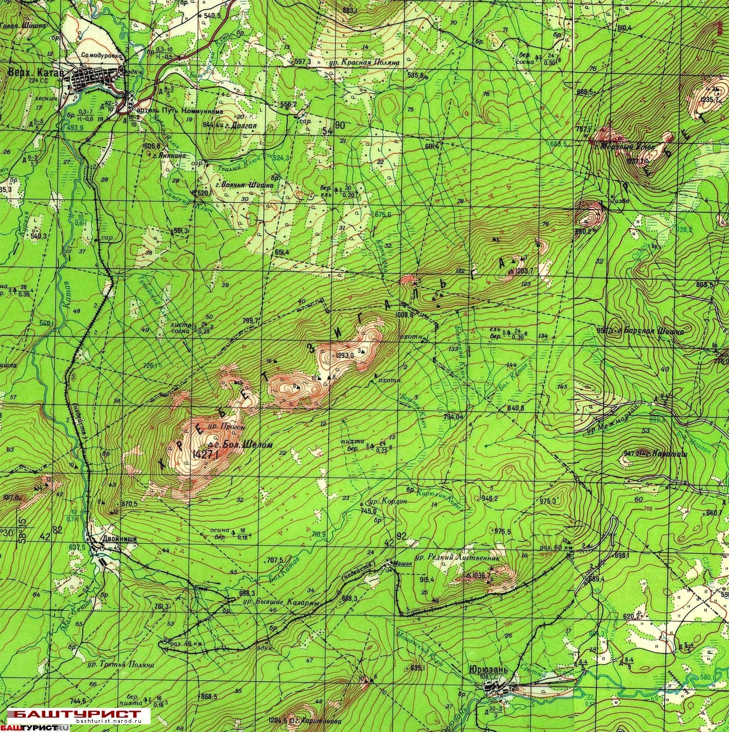 Хребет Зигальга, гора Большой Шелом на карте