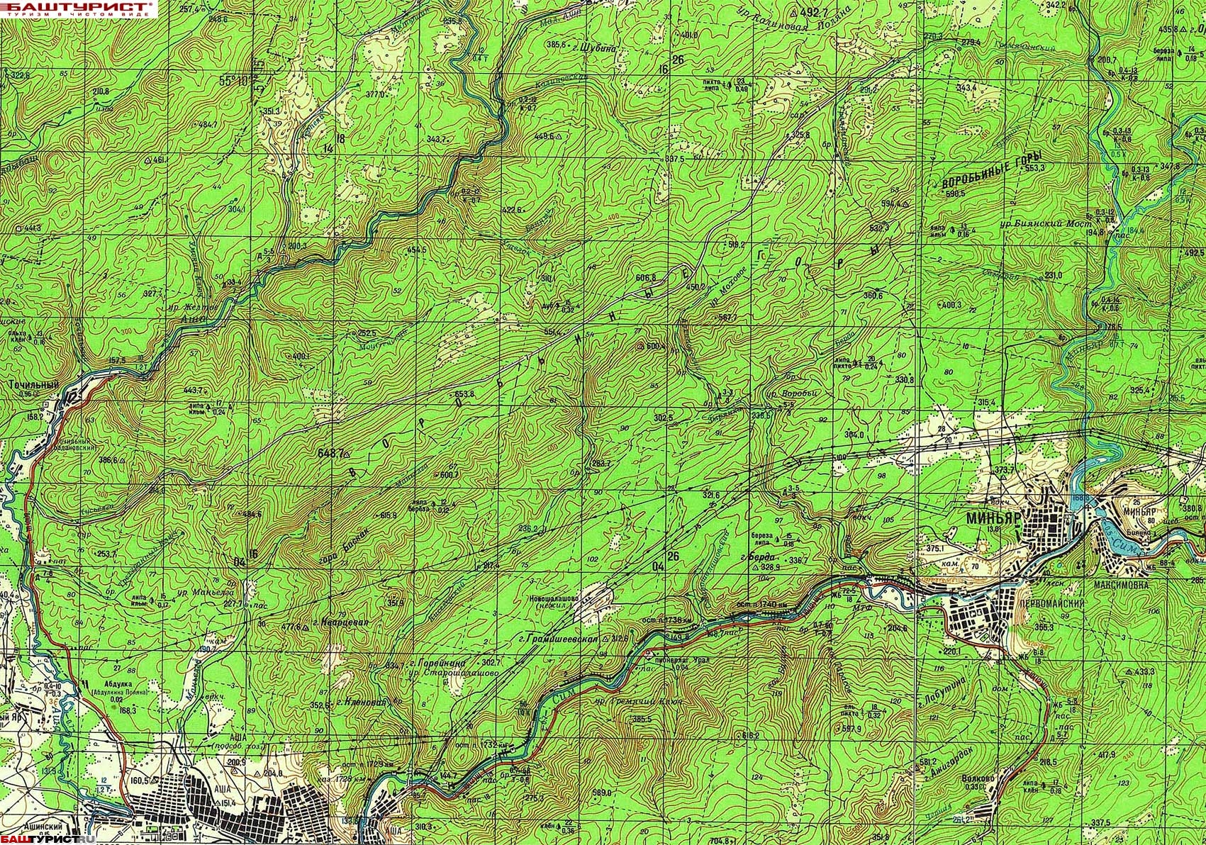 Воробьиные горы. Миньяр на карте