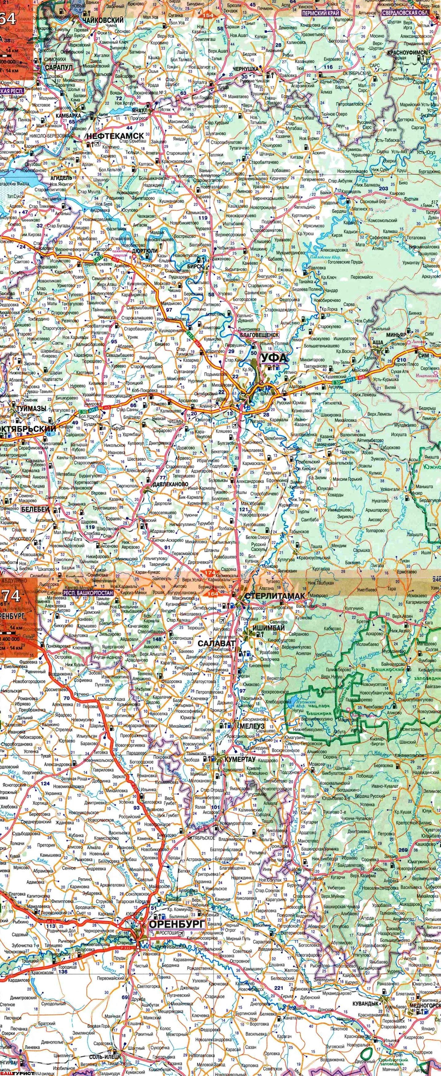 Карта Республики Башкортостан
