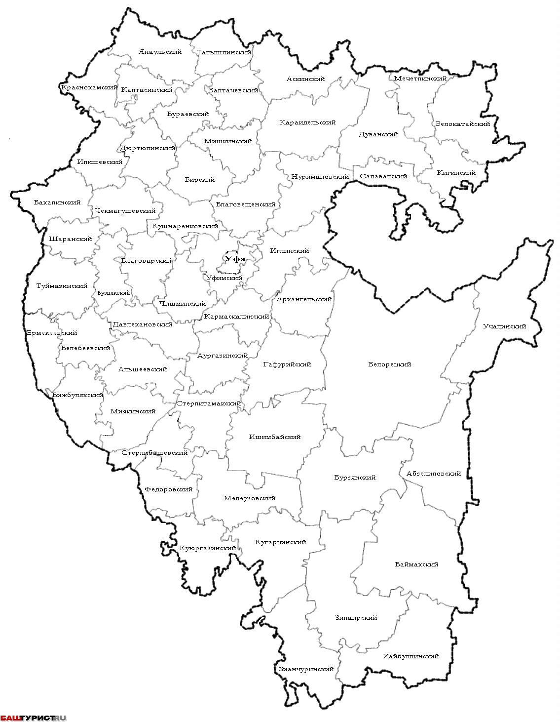 Схема районов Башкортостана