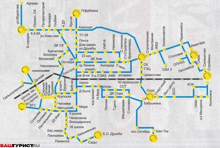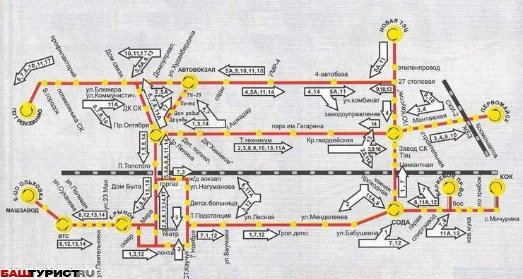 Схема маршрута автобусов города Стерлитамак