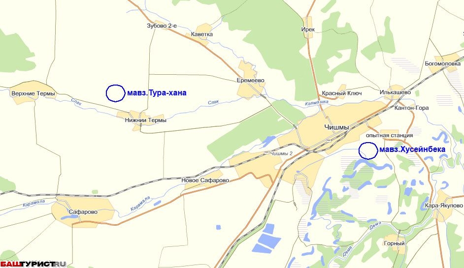 Мавзолей Тура-хана и Хусейнбека на карте. Чишмы